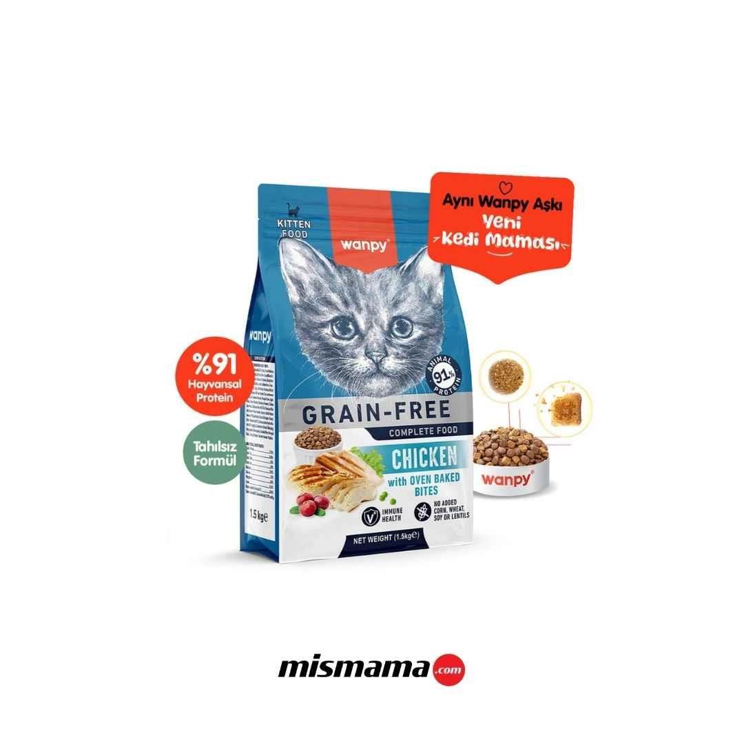 Wanpy Tahılsız Tavuklu Yavru Kedi Maması 1,5 Kg, yavru kedilerin sağlıklı büyümesi için yüksek kaliteli tavuk proteini, dengeli vitamin-mineral içeriği ve tahılsız formülüyle hazırlanmış, sindirimi kolay premium bir mamadır.